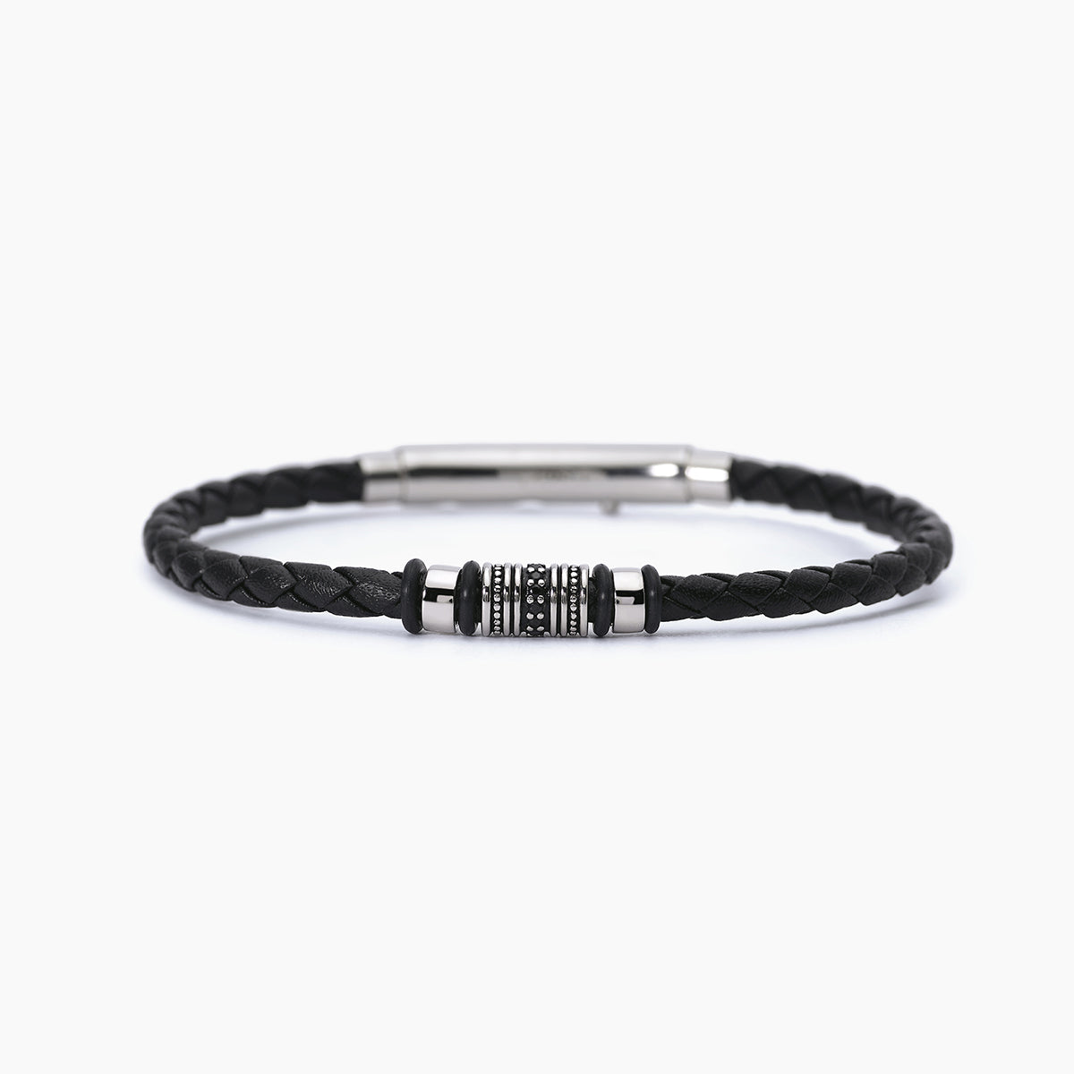 BRACCIALE UOMO IN ACCIAIO E PELLE NERASMARTER